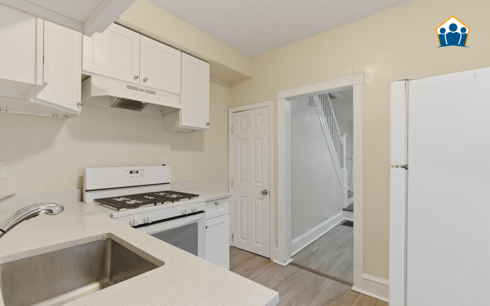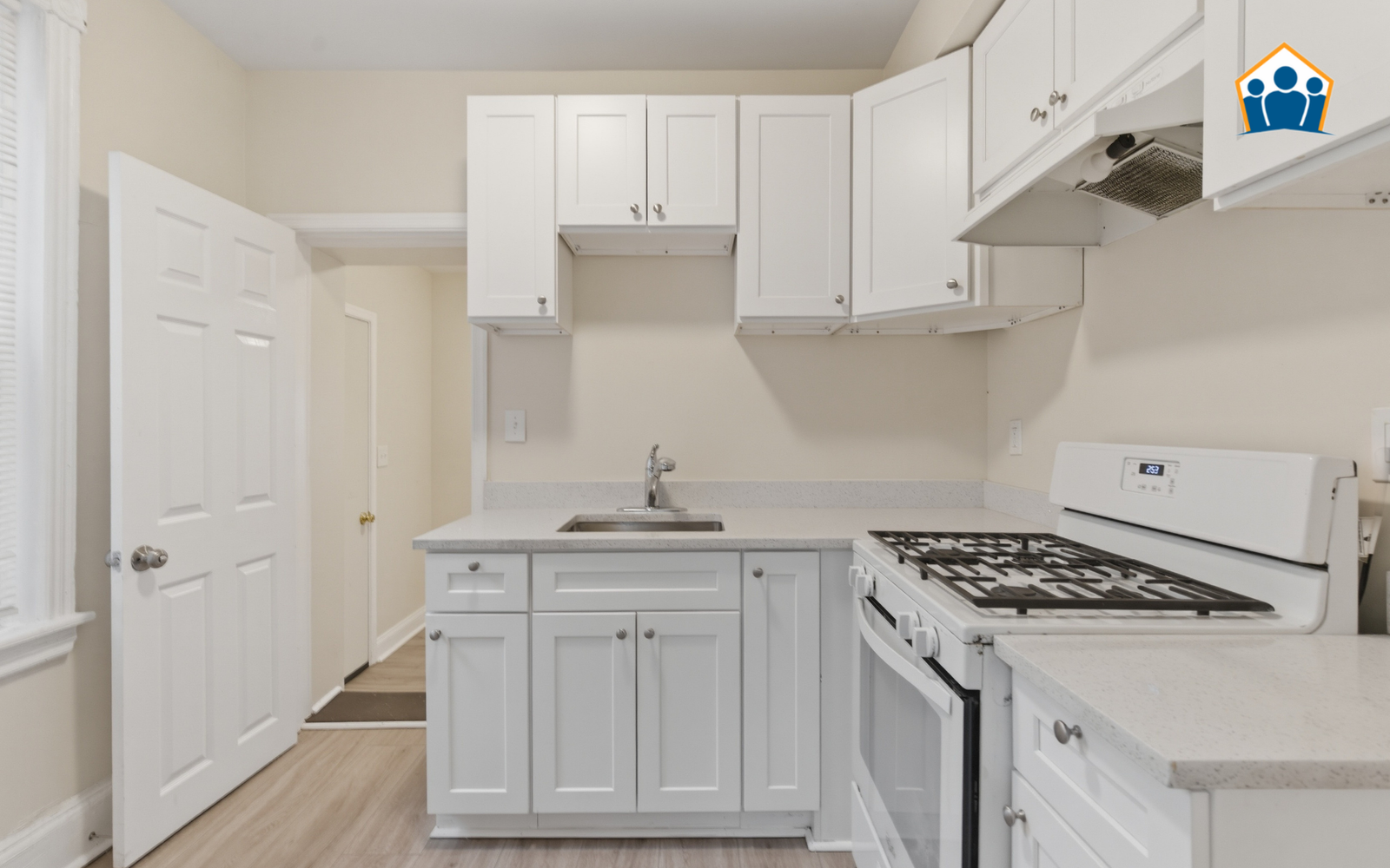 The interior has been refreshed from top to bottom, featuring durable new flooring and fresh neutral paint throughout the entire house. The kitchen is designed for daily utility, offering brand-new cabinetry and essential appliances in a tidy, efficient layout. Both bedrooms provide comfortable private space with ample natural light, while the bathroom has been updated with modern, standard hardware for a clean, unified look.