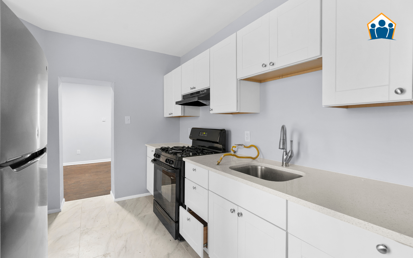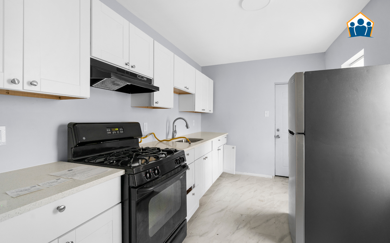 The interior has been refreshed from top to bottom, featuring durable new flooring and fresh neutral paint throughout. The kitchen is designed for daily practicality, offering brand-new cabinetry and essential appliances in a tidy, efficient layout. All three bedrooms provide essential private space with ample natural light, while the bathroom has been updated with modern, standard hardware for a consistent, refreshed look.