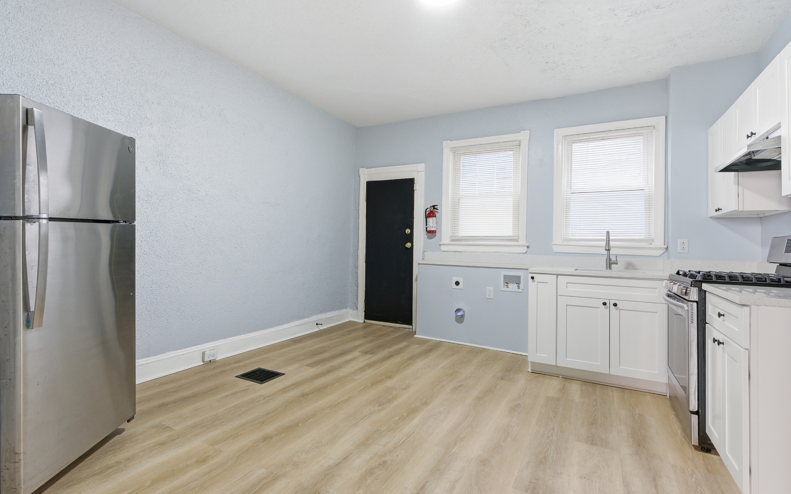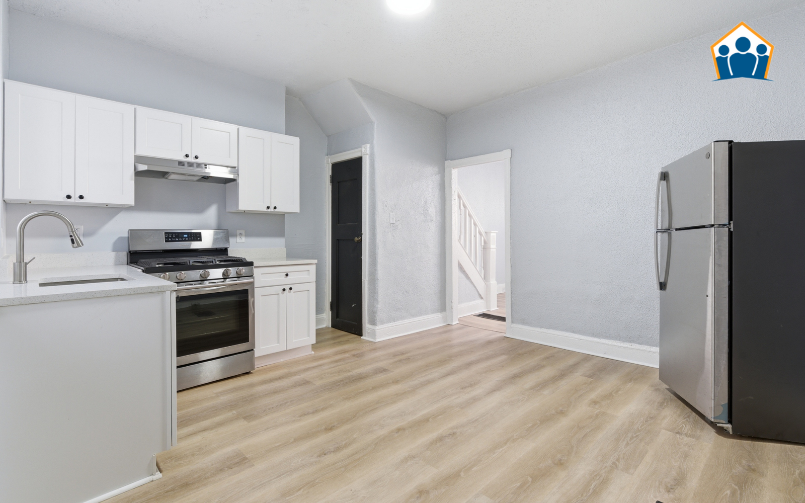 The interior has been renovated with a focus on clean lines and durability. You will find brand-new flooring and fresh neutral paint throughout the entire house, creating a bright and consistent atmosphere. The kitchen is designed for high-efficiency daily use, featuring brand-new cabinetry and essential appliances in a tidy, streamlined layout. Both bedrooms provide comfortable private space with consistent finishes, while the bathroom has been updated with modern hardware for a clean, unified look.